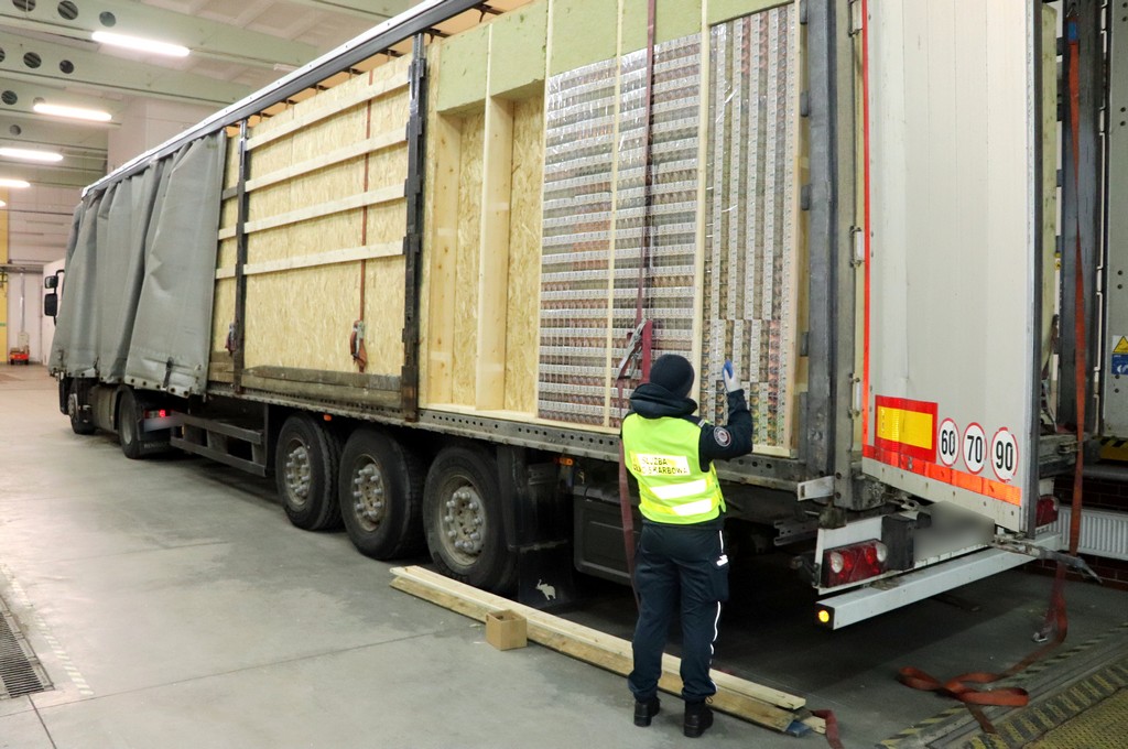 Zamiast deklarowanego towaru, w naczepie były przewożone specjalnie przygotowane drewniane konstrukcje wypełnione papierosami. W ciężarówce znajdowało się niemal 400 tys. paczek białoruskich papierosów. Rozładunek i dokładne przeliczenie kontrabandy trwało blisko dobę.