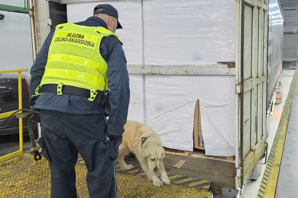 Podczas kontroli ciężarówka została prześwietlona. Funkcjonariusze wykryli w niej przemycane papierosy. Mundurowych wspierała Luna – pies służbowy rasy golden retriever, wyszkolony do wykrywania wyrobów tytoniowych.