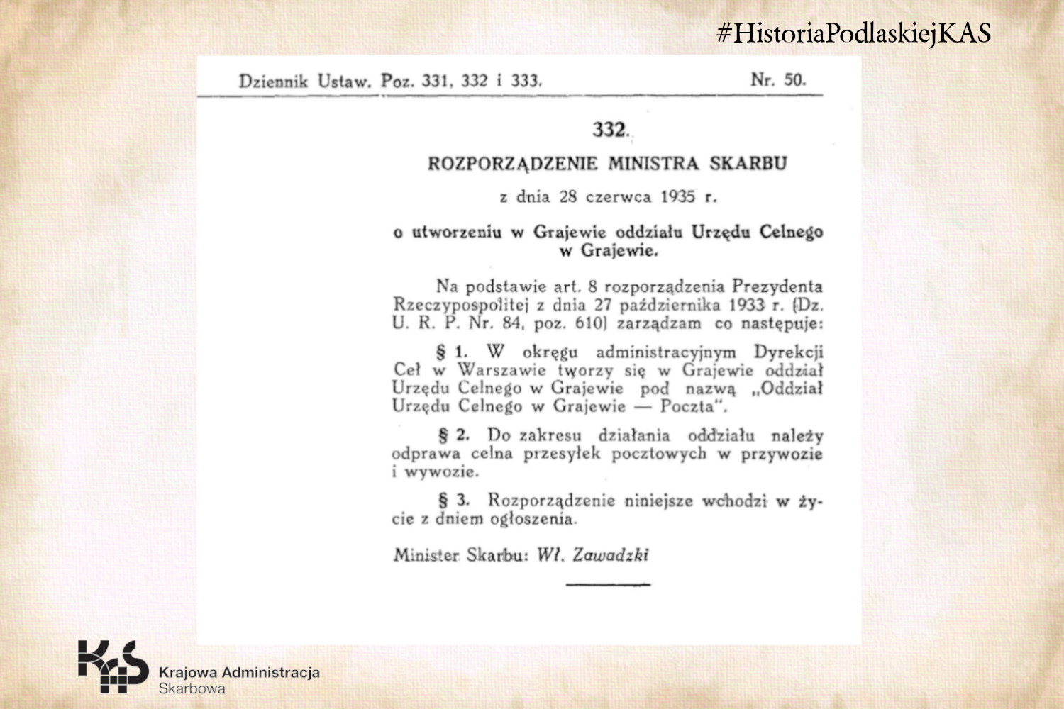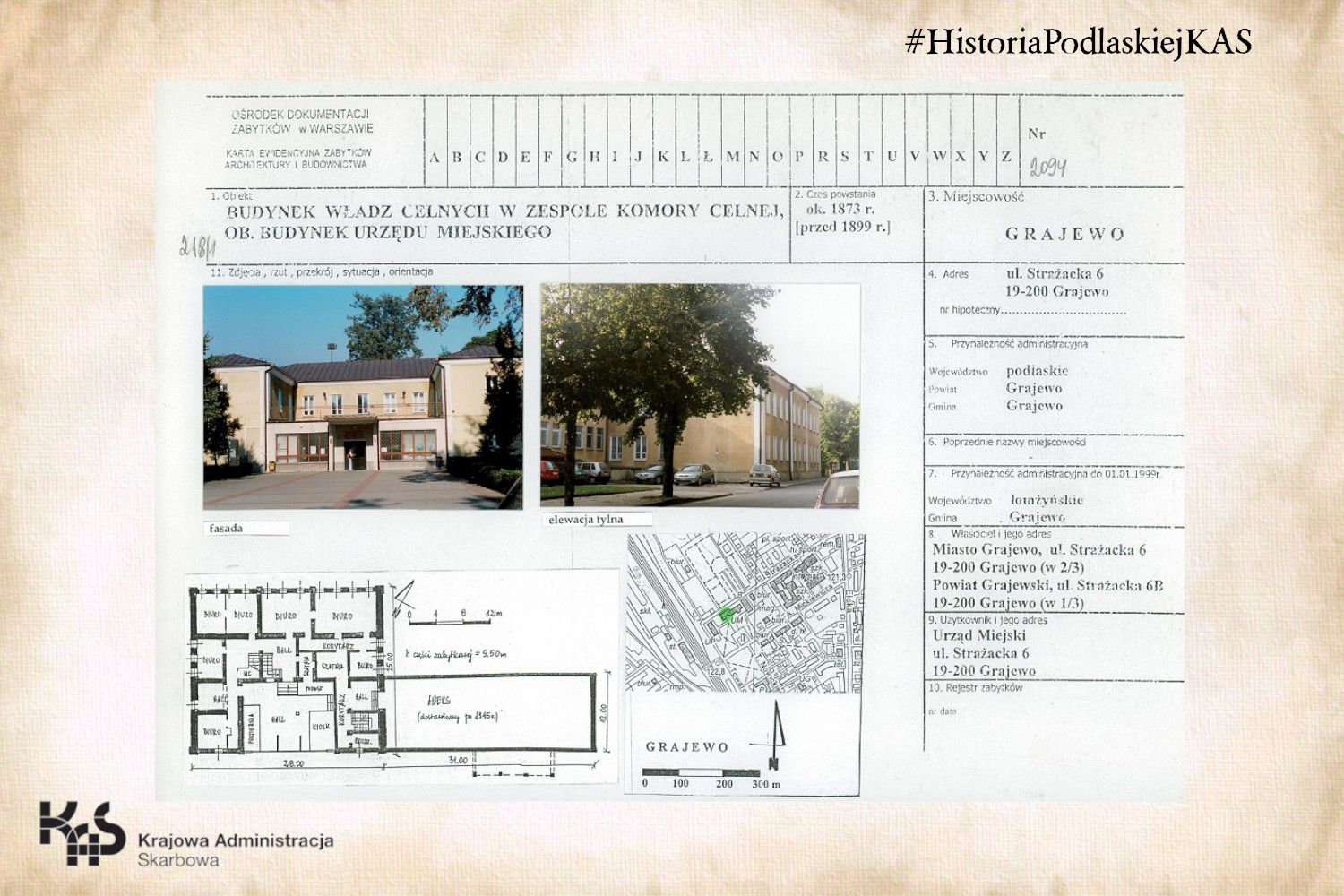 - Historia Urzędu Celnego w Grajewie to kolejny dokument przedstawiający dzieje podlaskiej skarbowości opisywany w ramach cyklu „Jak to dawniej bywało – z kart historii podlaskiej KAS", ale też i bogatej przeszłości Grajewa.